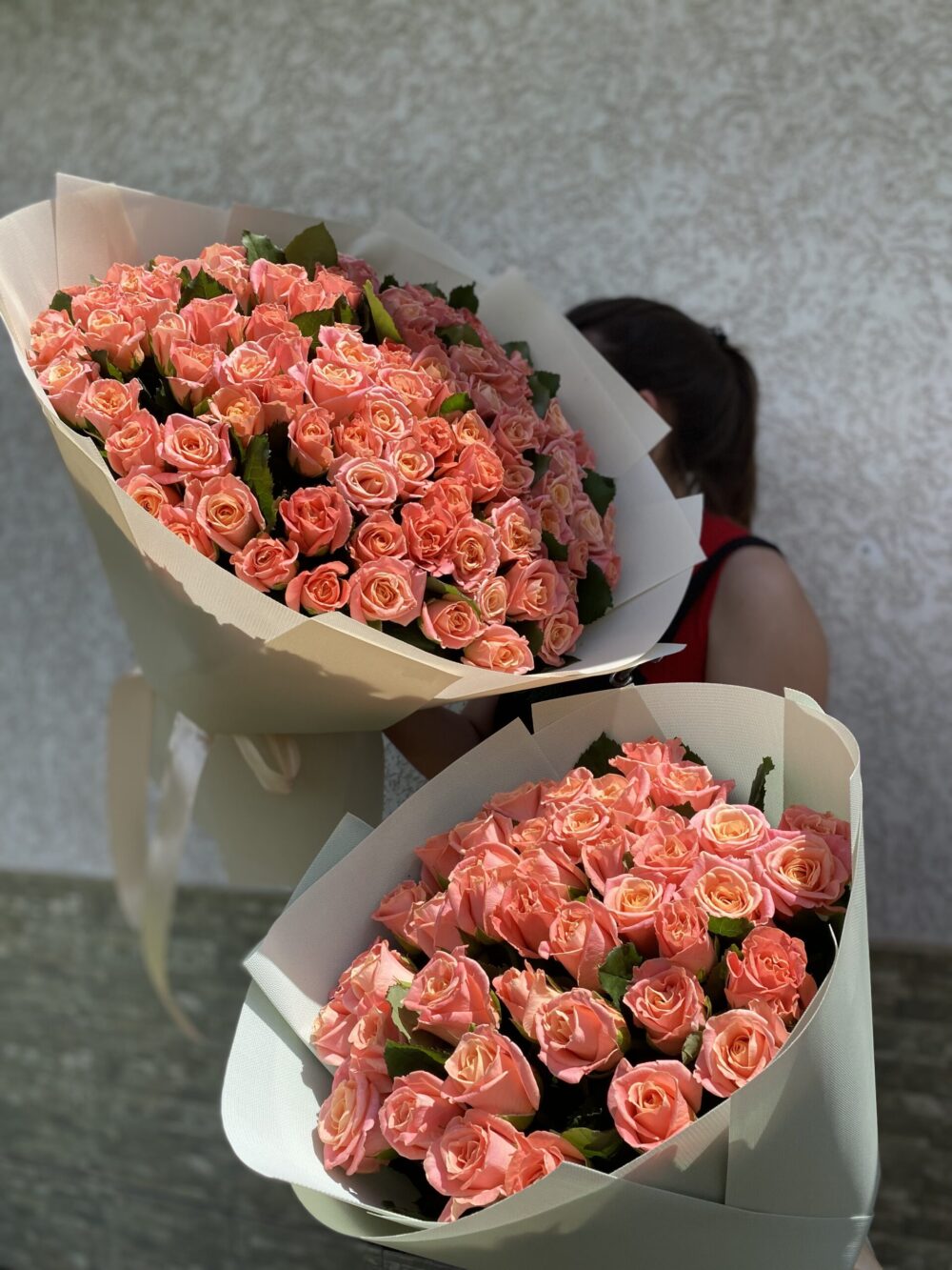 Замовте букет із 101 однобутонної троянди «Міс Піггі» від DonnaRosa та подаруйте незабутні емоції!
