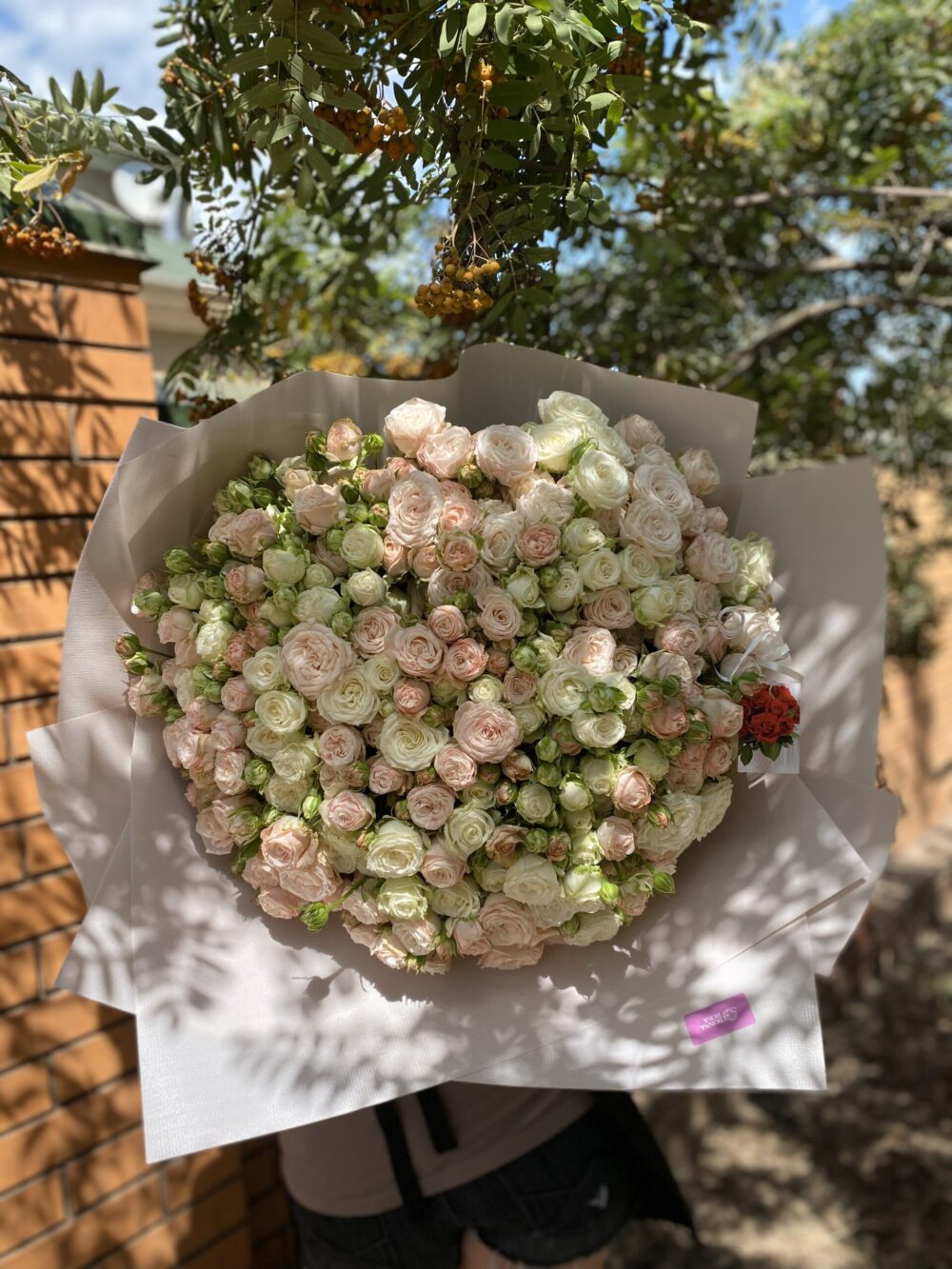 Букет із 51 піоновидної троянди – це справжній витвір флористичного мистецтва, створений для того, щоб зробити ваші особливі моменти незабутніми. Ці квіти поєднують пишність півоній із класичною елегантністю троянд, що робить їх ідеальним вибором для весіль, ювілеїв, днів народження чи романтичних сюрпризів. Кожна гілка, висотою 50–60 см, вражає багатошаровими пелюстками в ніжних відтінках – від пудрово-рожевого до кремового, персикового та пастельно-білого. Їхній тонкий, вишуканий аромат наповнює простір теплом, створюючи атмосферу любові, радості та гармонії.