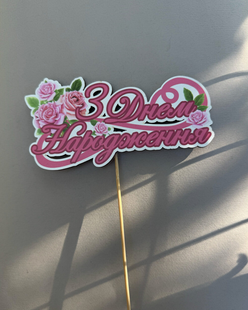 Топпери “З Днем Народження” для тортів та композицій квітів в асортименті